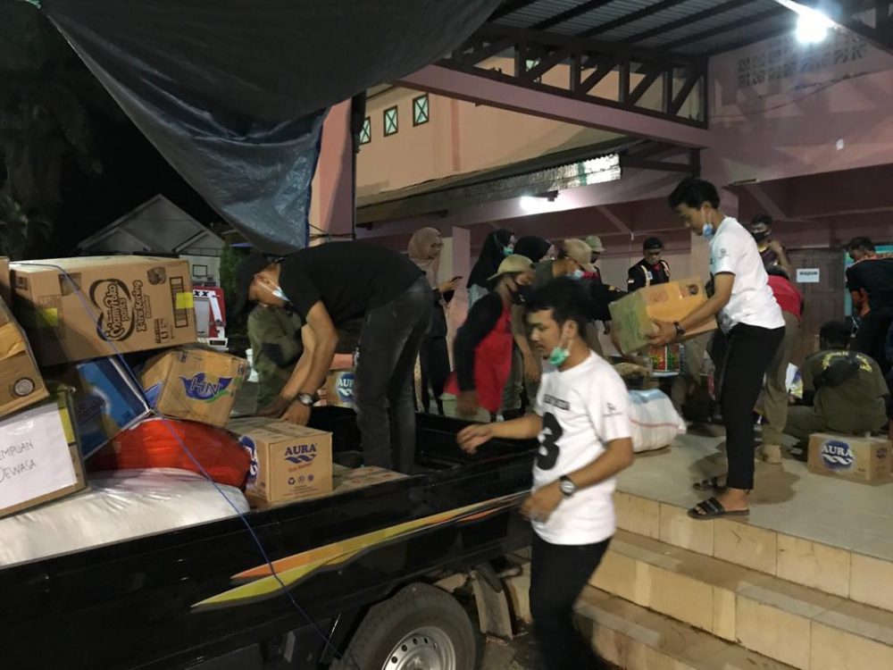 Penyerahan bantuan yang digalang oleh Sahabat Muda Tanah Bumbu langsung di salurkan posko bencana Kabupaten Tanah Laut menggunakan duah buah mobil untuk membawa berbagai macam bantuan.