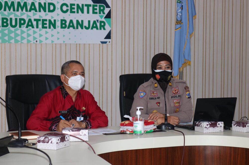 Acara dihadiri dan dibuka Bupati Banjar H Khalilurrahman yang diwakili Asisten Bidang Pemerintahan dan Kesejahteraan Masyarakat Setda Banjar H Masruri, dengan narasumber Kepala Dinas Kesehatan Kabupaten Banjar dr Diauddin, Kepala Dinas PMD Banjar Syahrial dan Kasat Binmas Polres Banjar Hj Amalia Afifi. Turut hadir melalui daring para Camat, Kapolsek dan Danramil se-Kabupaten Banjar.