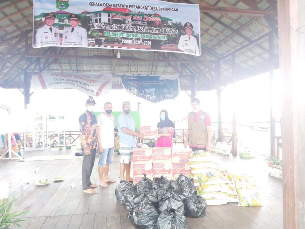 Bantuan diserahkan oleh pihak BPBD Tanah Bumbu, Sabtu (13/03/2021) di Desa Serdangan.