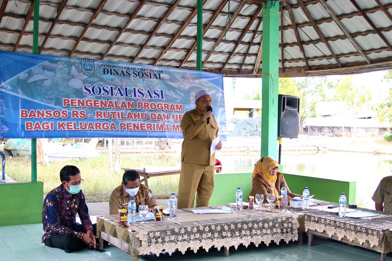 HEADLINE9.COM, ARTAPURA- Mendukung percepatan penanganan kemiskinan di Kabupaten Banjar, dilaksanakan kegiatan sosialisasi rehabilitasi Rumah Tidak Layak Huni ( Rutilahu ) dan Usaha Ekonomi Produktif Kelompok Usaha Bersama ( UEP KUBE ) di Rumah Makan Pondok Lima Sungai Sipai Martapura, Selasa ( 8/6/2021) pagi.
