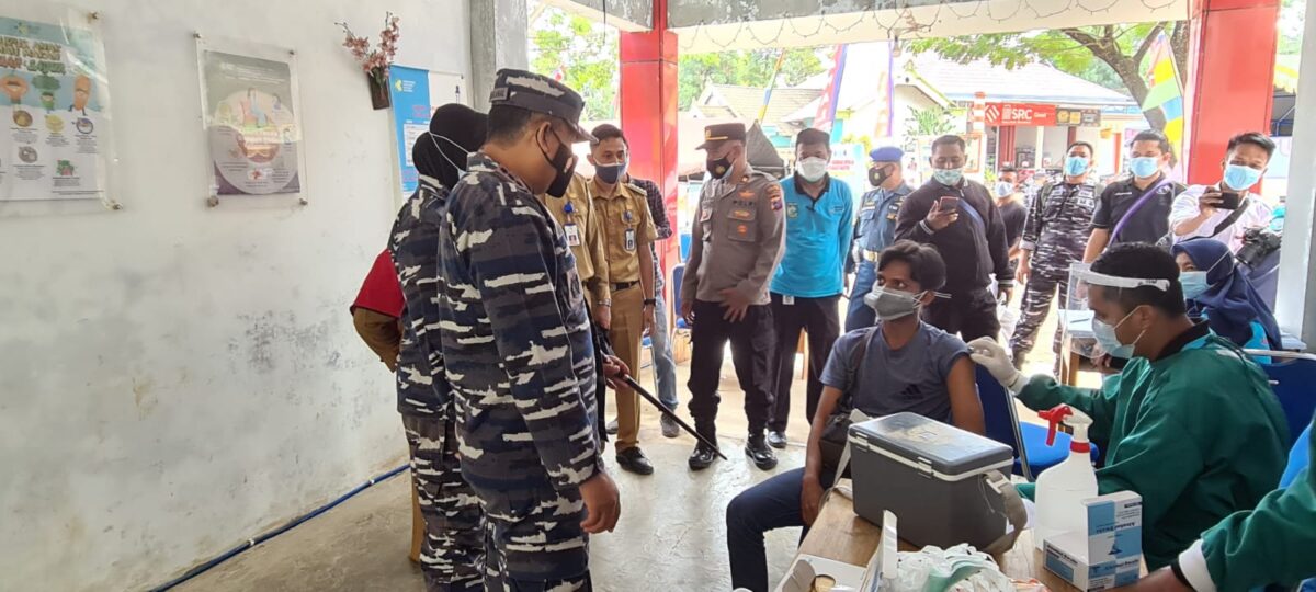 Sebanyak 29 Tim Vaksinator (Nakes) dari Balai Pengobatan Lanal Banjarmasin, Dinkes Tanah Laut (Puskesmas Takisung, Puskesmas Kurau dan Puskesmas Pelaihari) dengan terapkan Prokes ketat melaksanakan Vaksinasi kepada masyarakat Pesisir mulai pukul 08.20 – 14.12 Wita, dari 529 peserta pendaftar  berhasil diVaksinasi semuanya dengan menggunakan Vaksin jenis Sinovac sebanyak (60 Vial).