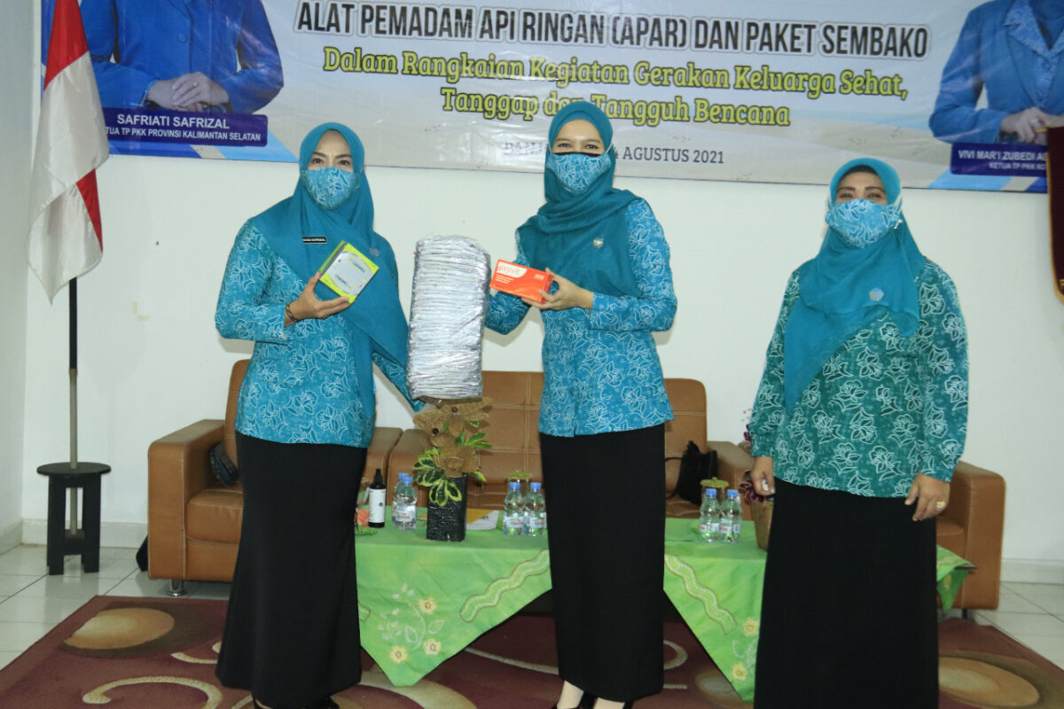 Didampingi Ketua I Bidang Pembinaan Karakter Ermina Fujianti Wartono menerima bantuan oleh Penjabat Ketua TP PKK Prov Kalsel Safriati Safrizal ZA. Dalam rangka Gerakan Keluarga Sehat Tanggap dan Tangguh Bencana yang dilaksanakan oleh TP PKK pusat yang bersinergi dengan TP PKK Provinsi Kalimantan Selatan. Bertempat di Sekretariat TP PKK Kota Banjarbaru Jalan Taman Gembira Barat Kelurahan Guntung Paikat Kecamatan Banjarbaru Selatan Kota Banjarbaru.