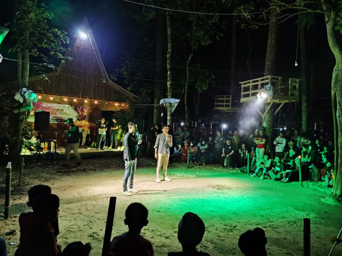 Headline9.com, PARINGIN – Pawadahan Nanang Galuh (Naga) Balangan bersama Dinas Kepemudaan Olahraga dan Pariwisata (Disporapar) Kabupaten Balangan menggelar kegiatan bertajuk Apresiasi Seni dan Budaya Banua Sanggam bertempat di Objek Wisata Racah Mampulang Desa Balida Kecamatan Paringin, Sabtu Malam (18/12/21).