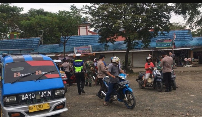BATULICIN,headline9.com – Polisi, TNI, Denpom, Satpol PP berdiri ditengah jalan dan mengarahkan pengendara roda dua, empat dan lebih langsung ke arah halaman parkir Pasar Niaga Bersujud, Sabtu (25/12/2021).