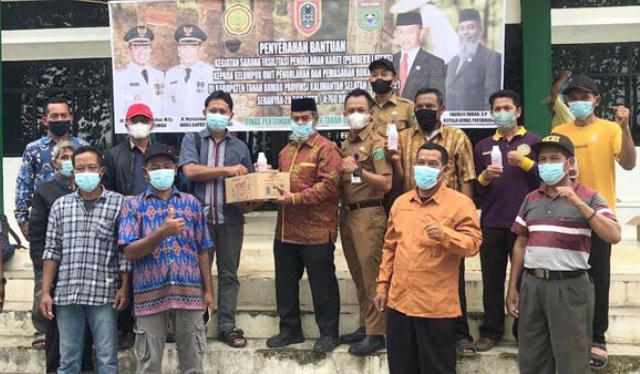Bantuan ini diserahkan kepada kelompok Unit Pengolahan dan Pemasaran Bokar (UPPB) yang ada di Kabupaten Tanah Bumbu sebanyak 28.560 Liter atau 4.760 Dus.
