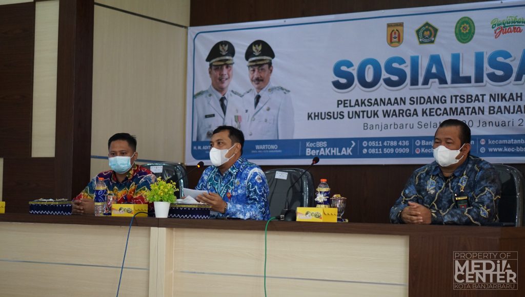 Bertempat di Aula Kecamatan Banjarbaru Selatan, Sosialisasi Pelaksanaan Sidang Isbat Nikah Terpadu di Wilayah Kecamatan Banjarbaru Selatan yang dihadiri oleh Lurah se-Kota Banjarbaru dan Ketua RT se-Kecamatan Banjarbaru Selatan, dengan narasumber Walikota Banjarbaru H. M. Aditya Mufti Ariffin, Ketua Pengadilan Agama Kota Banjarbaru Dr. H. Muhammad Najmi Fajri, SHI, MHI dan Camat Banjarbaru Selatan Taufik Purwanto, S.STP, M.AP dilaksanakan pada (20/01/2022) Kamis pagi.