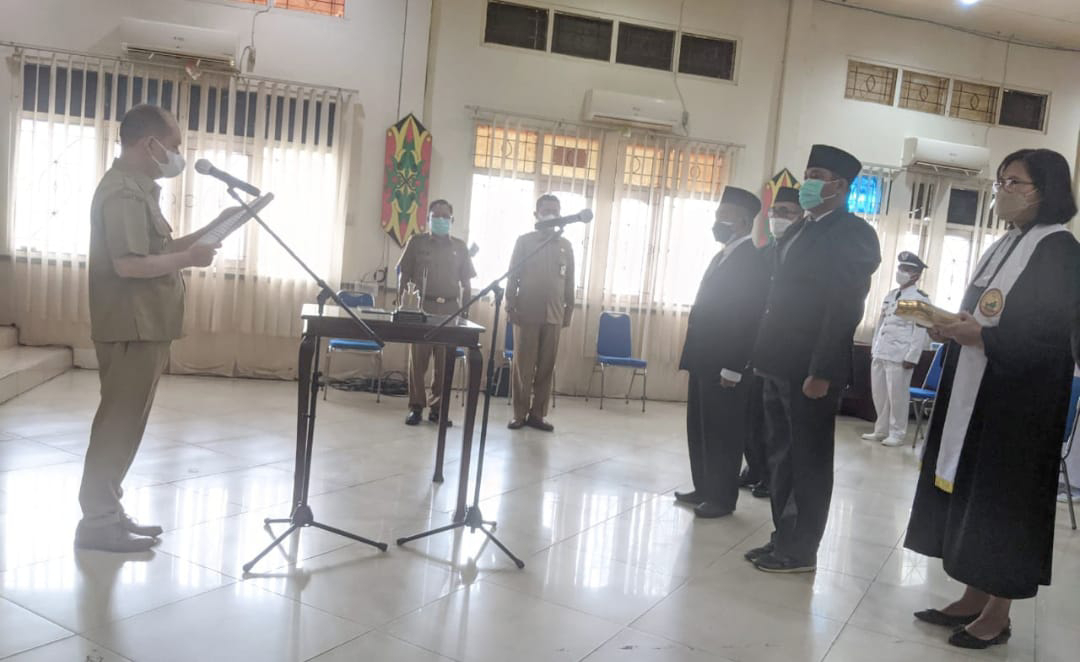 headline9.com, KUALA KAPUAS – Sejumlah pejabat administrator dan pengawas di lingkungan Pemkab Kapuas di Lantik Bupati Kapuas Ir Ben Brahim S Bahat, pelantikan dan pengambilan sumpah janji digelar di Aula Kantor Bappeda, Jalan Tambun Bungai Kuala Kapuas, Selasa (8/3/2022).