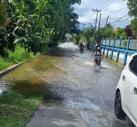 Hingga pukul 15.00 Wita, ketinggian air lebih dari 10 cm, bahkan sampai masuk rumah warga.