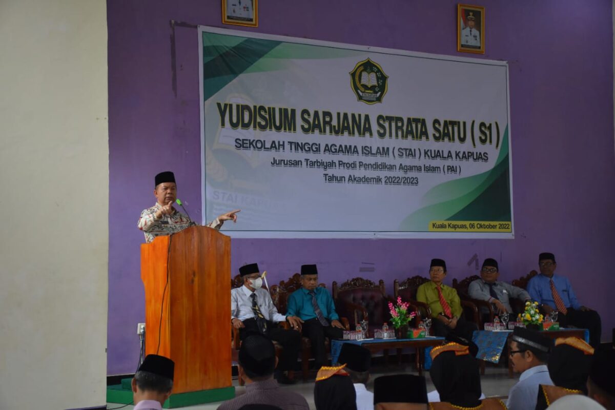 HEADLINE9.COM, KUALA KAPUAS – Ketua Sekolah Tinggi Agama Islam (STAI) Kuala Kapuas yang juga Wakil Bupati Kapuas Drs. HM Nafiah Ibnor meyudisiumkan 205 orang mahasiswa yang telah selesai melaksanakan ujian skripsi tahun akademik 2021- 2022, Kamis (06/10/2022) bertempat di Auditorium STAI Kuala Kapuas. Kegiatan ini berdasarkan Surat keputusan Ketua STAI Kuala Kapuas Nomor : 158/STAI/Kps/XI/X/2022.