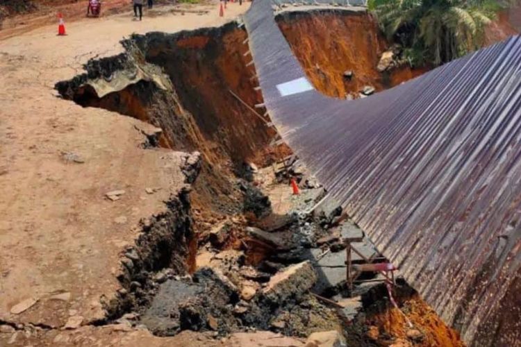 Diperkirakan karena kondisi jalan yang sudah labil, akhirnya tidak dapat mendukung lagi dengan beban kendaraan yang melintas. Kondisi ini menimbulkan kekhawatiran warga yang menggunakan jalan itu.