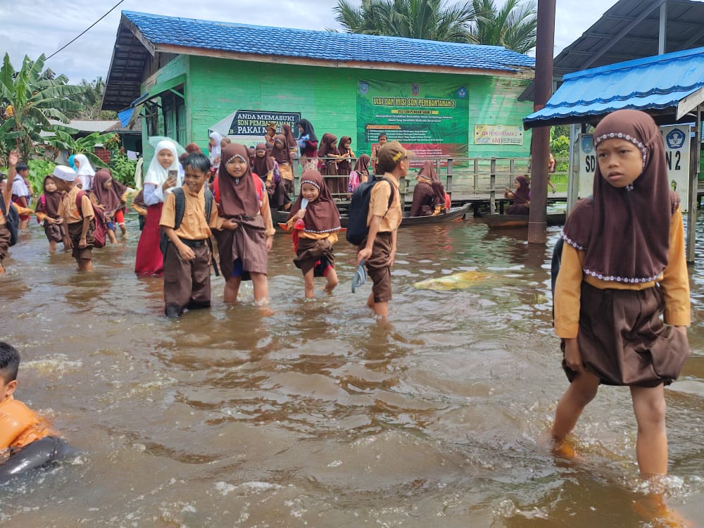 Akibatnya, pelajar dan guru kesulitan untuk menuju sekolah tersebut, bahkan banyak yang harus menggunakan perahu untuk ke sekolah.