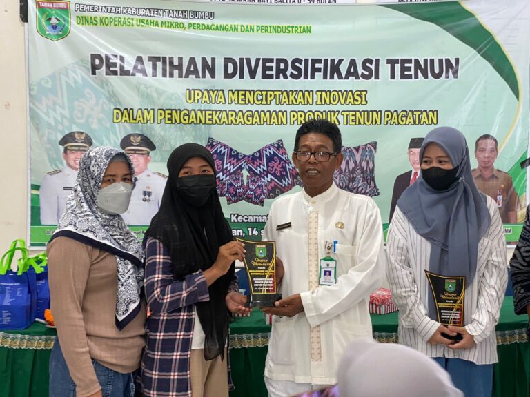 Headline9.com, BATULICIN –Pelatihan diversifikasi tenun Pagatan ditutup, Jumat (18/11/2022) di Aula Kantor Lurah Kota Pagatan, Kecamatan Kusan Hilir.