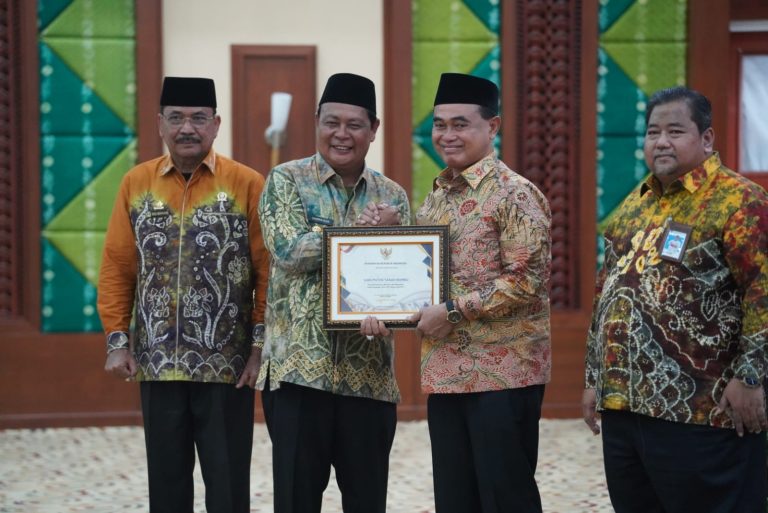 Pada kesempatan tersebut, Paman Birin menyerahkan penghargaan Menteri Keuangan Sri Mulyani kepada Pemda Kabupaten Kota yang memperoleh Opini WTP dan penyerahan penghargaan penyaluran DAK Fisik dan Dana Desa Tahun 2022. (MHL)
