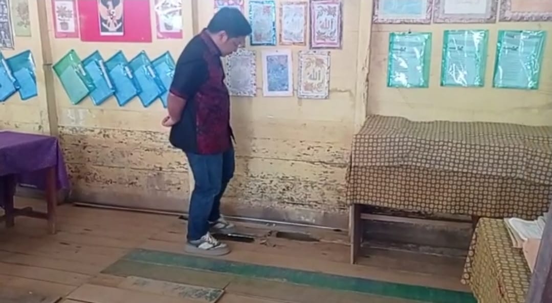 “Saya menilai bangunan sekolahan ini harus diganti. Karena kondisinya sudha tidak layak dan sangat membahayakan. Tiang-tiangnya ada yang sudah lapuk. Ditambah lagi lantainya juga banyak yang berlubang dan bertambal,” ungkapnya.