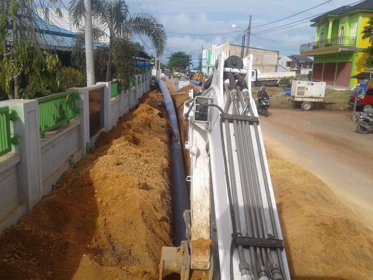 Pipa tersebut dipasang di bawah jalan, tentunya pemasangan pipa membuat sebagian jalan yang di pasang pipa mengalami kerusakan karena di bongkar.