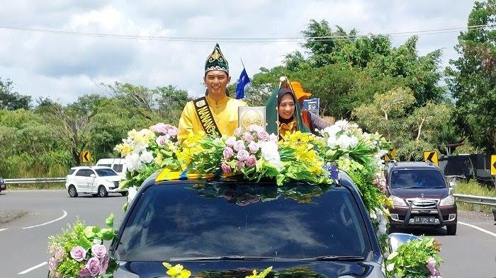 Tampak pasangan Aditya dan Wartono di sambut oleh unsur Forkopimda, Kepala SKPD dengan iring-iringan Sinoman Hadrah.