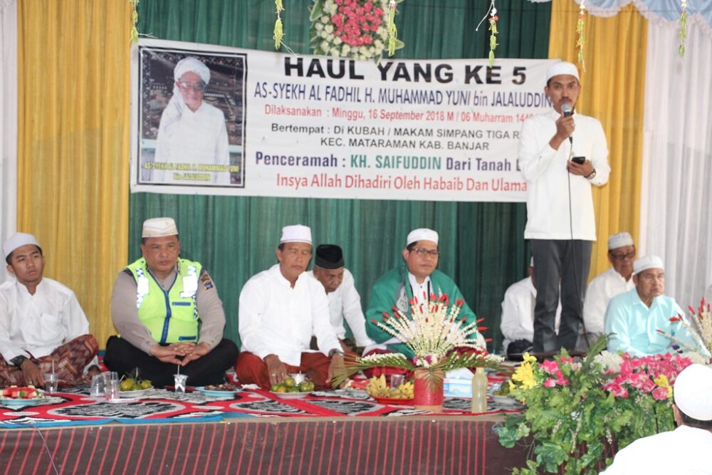 HEADLINE9 MARTAPURA – Wakil Bupati Banjar H Saidi Mansyur (HSM) hadir di antara ribuan jemaah haul ke-5 As Syekh Al Fadhil H Muhammad Yuni bin Jalaludin, di Desa Simpang Tiga, Kecamatan Mataraman, Minggu (16/9) tadi.