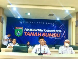 Pemkab Tanbu dihadiri Sekda H Ambo Sakka beserta jajarannya mengikuti rapat koordinasi tersebut secara virtual dari Ruang Digital Live Room (DLR) Kantor Bupati Tanah Bumbu di Batulicin.