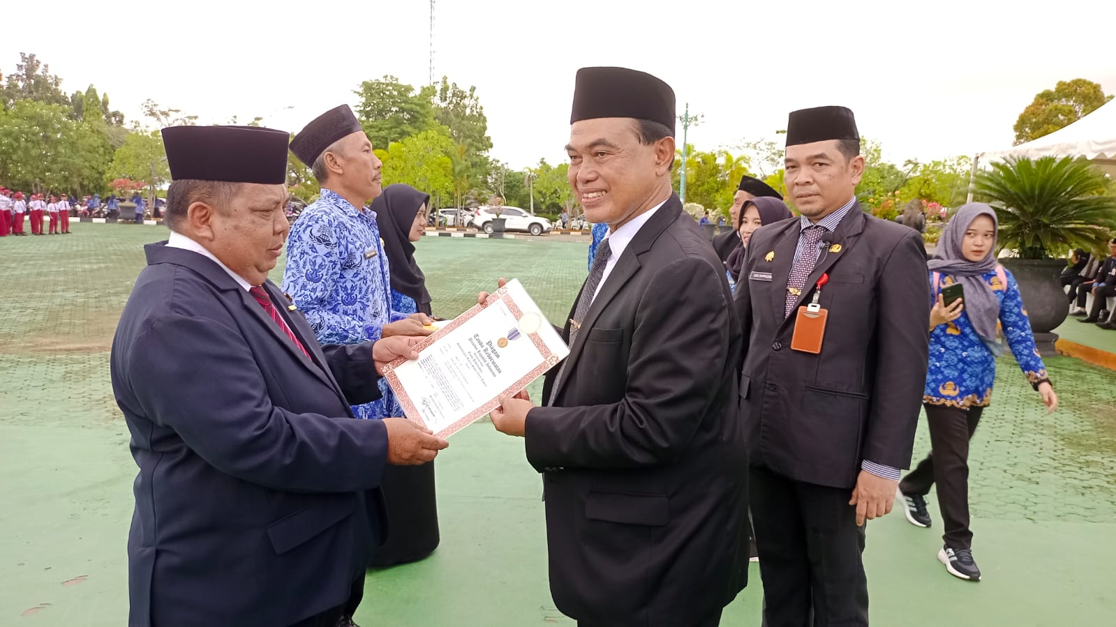 Dalam kesempatan itu bupati juga menyerahkan Satya lencana 20 tahun kepada guru ASN yang sudah mengabdi. (MHL)