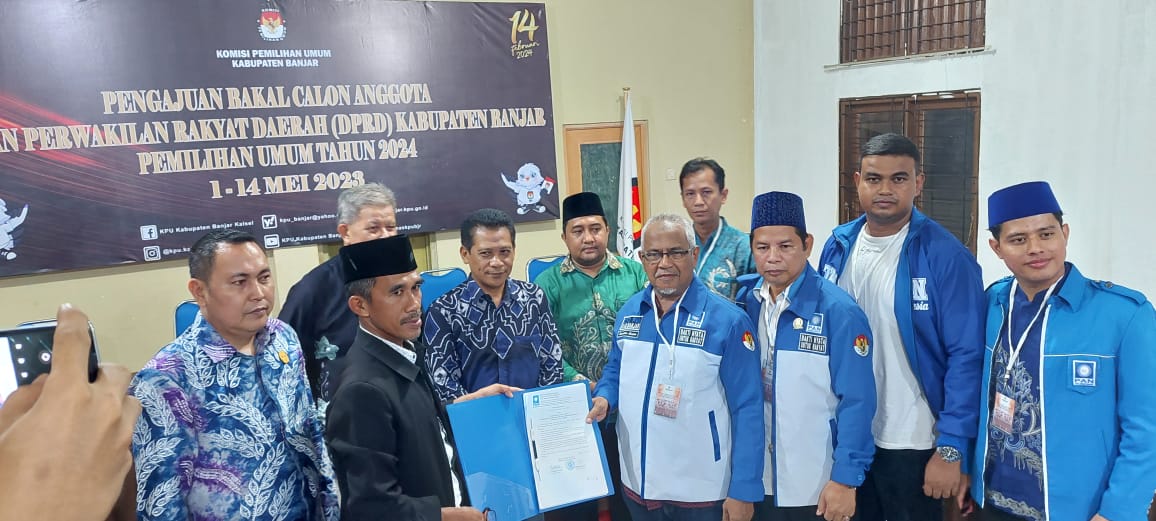 Headline9.com, MARTAPURA – Dewan Pengurus Daerah (DPD) Partai Amanat Nasional (PAN) Kabupaten Banjar untuk mendaftarkan bakal calon (Balon) anggota legislatif Kabupaten Banjar ke Komisi Pemilihan Umum (KPU) Kabupaten Banjar pada, Jumat 12 Mei sekitar pukul 15.28 sore.