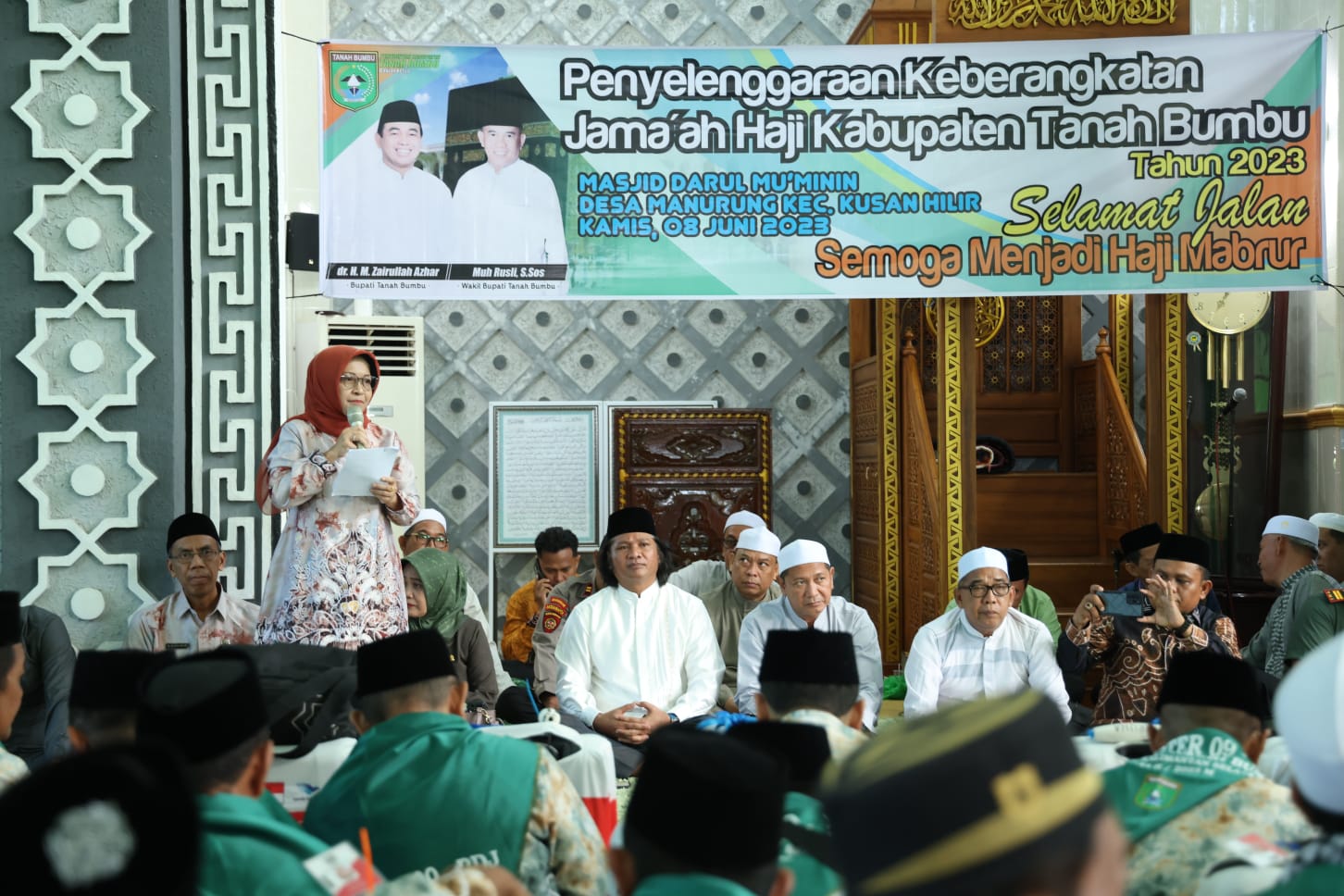 Pelepasan keberangkatan jamaah calon haji kloter sembilan menuju Embarkasi Banjarmasin dihadiri Kepala Kantor Kementerian Agama Tanah Bumbu, Anggota DPRD Tanbu, Kepala SKPD Pemkab Tanbu, dan undangan lainnya. (MHL)