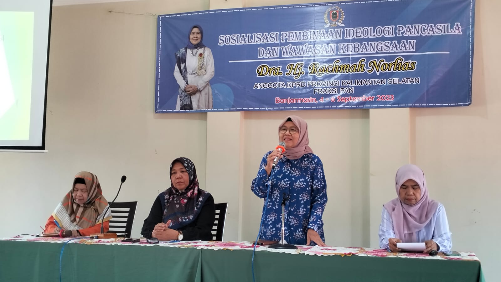 Dalam sosialisasinya tentang Pancasila dan wawasan kebangsaan, anggota dewan fraksi Partai Amanat Nasional ini, menghadirkan beberapa narasumber yang pernah berkiprah di eksekutif, seperti mantan Camat Banjarmasin Utara, serta pensiunan staf DPRD Kalimantan Selatan.
