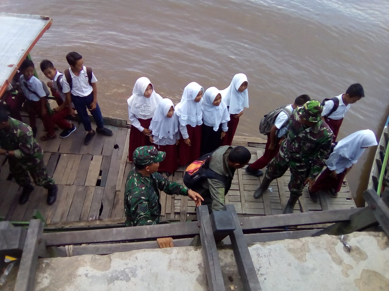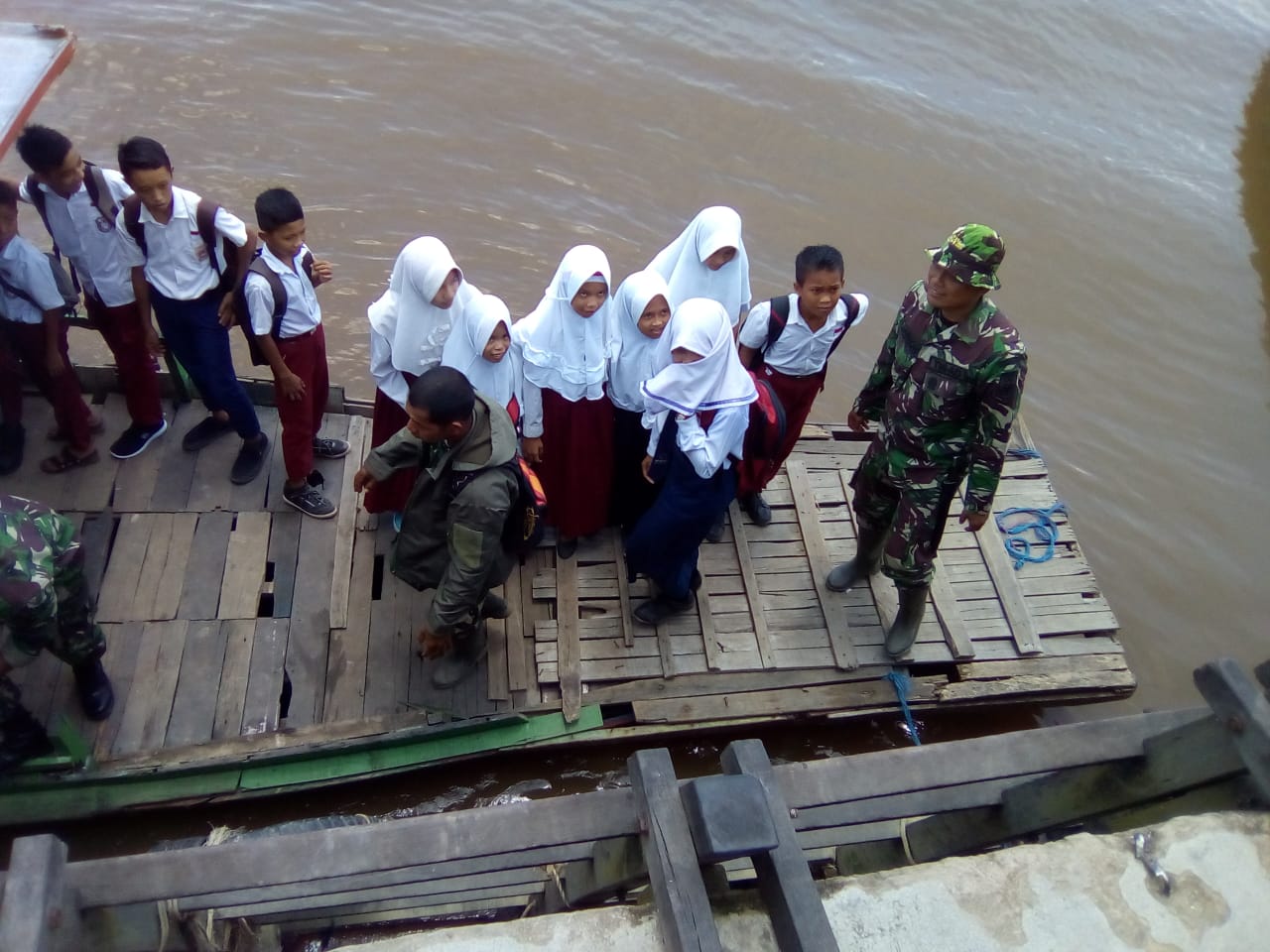 “Setiap hari, para Babinsa harus menyeberangkan anak-anak yang pergi dan pulang dari sekolahnya,” kata Edy Supriadi.
