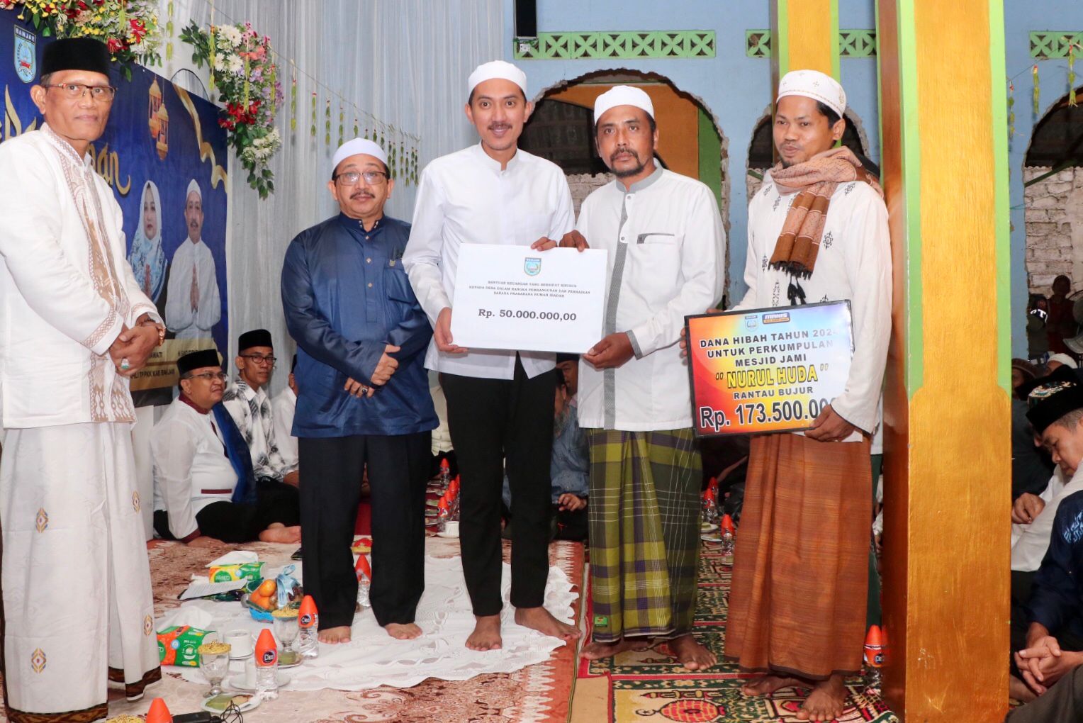 Sebagai bentuk dukungan pemerintah daerah, Bupati menyerahkan bantuan dana hibah sebesar Rp 173,5 juta kepada Masjid Jami Nurul Huda dan Rp 50 juta kepada Masjid Darul Mujahirin. Selain itu, Wakil Bupati Habib Idrus Al Habsyi dan Ketua TP PKK Hj Nurgita Tiyas juga membagikan paket sembako kepada warga yang membutuhkan.