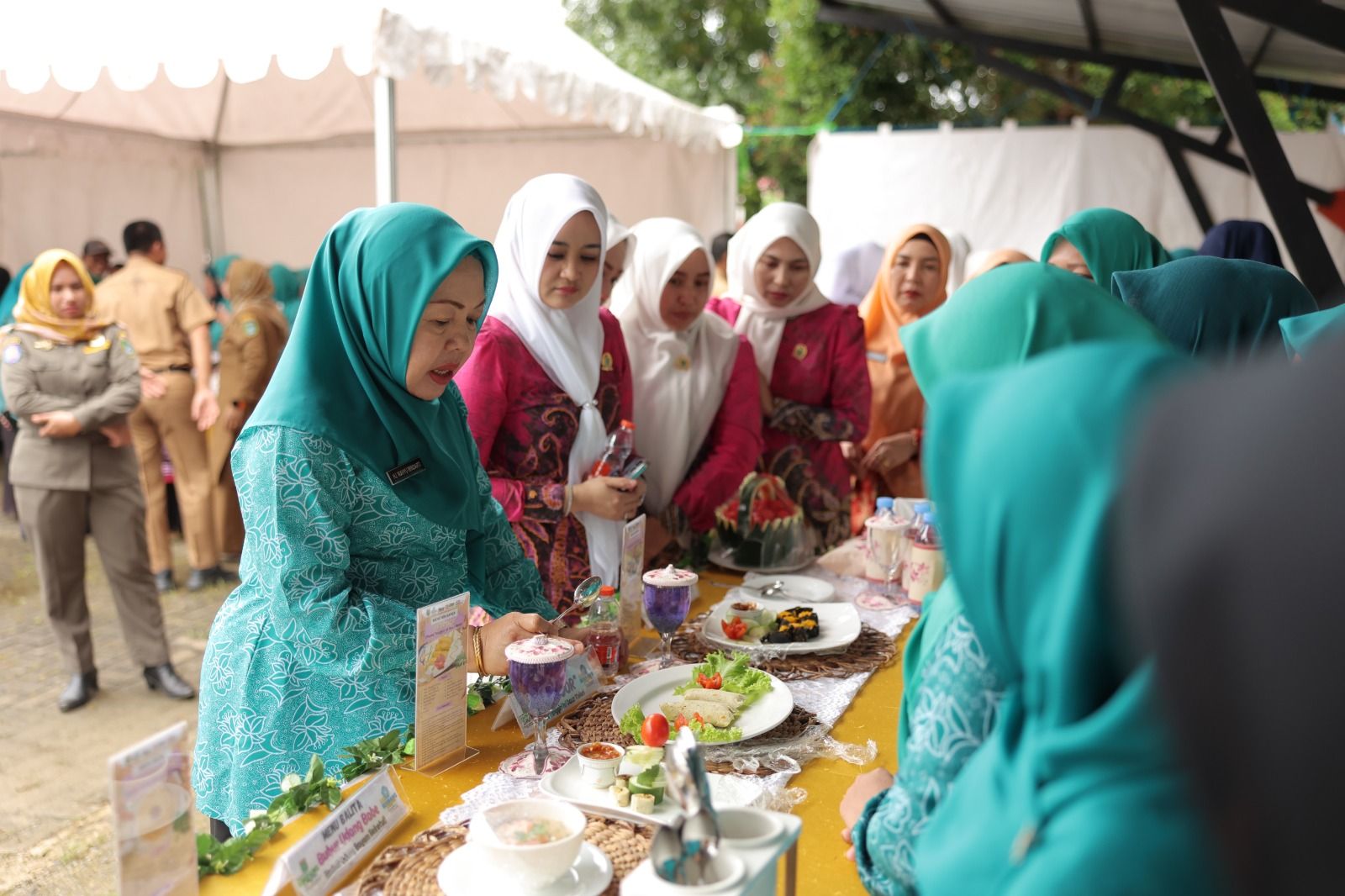 Turut hadir Ketua PKK Tanbu Hj.Wahyu Windari Zairullah, pengurus Gatriwara setempat serta tim penilai dari chef Agus Sasirangan dari Banjarmasin.