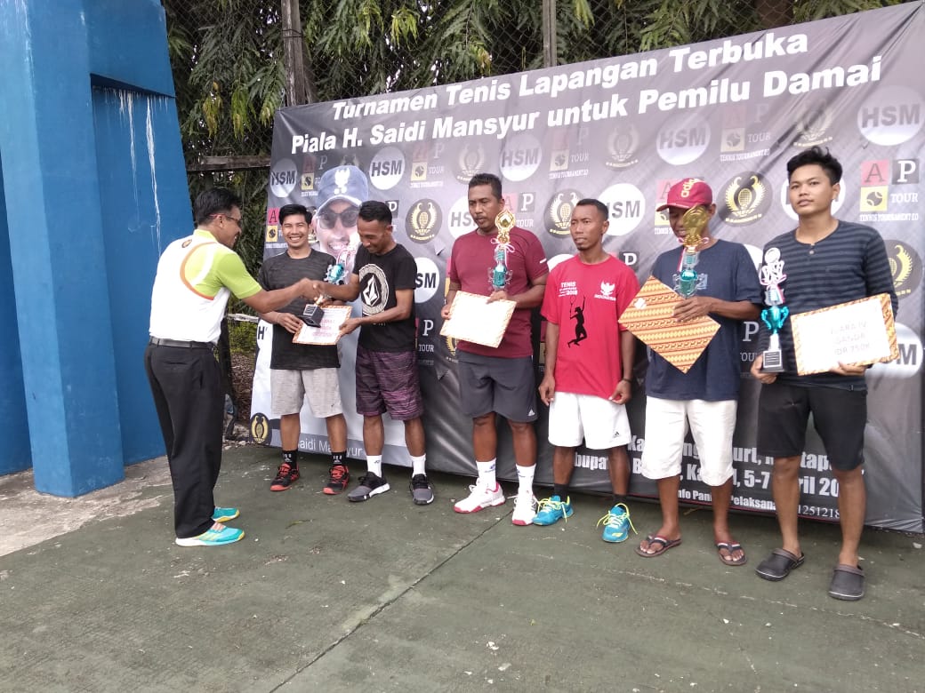 HEADLINE9.COM,MARTAPURA-Turnamen Tenis AP Tour-Piala H Saidi Mansyur untuk Pemilu Damai 2019 di Kayu Tangi Court Martapura, ahirnya usai pada Minggu (07/04/2019) petang.
