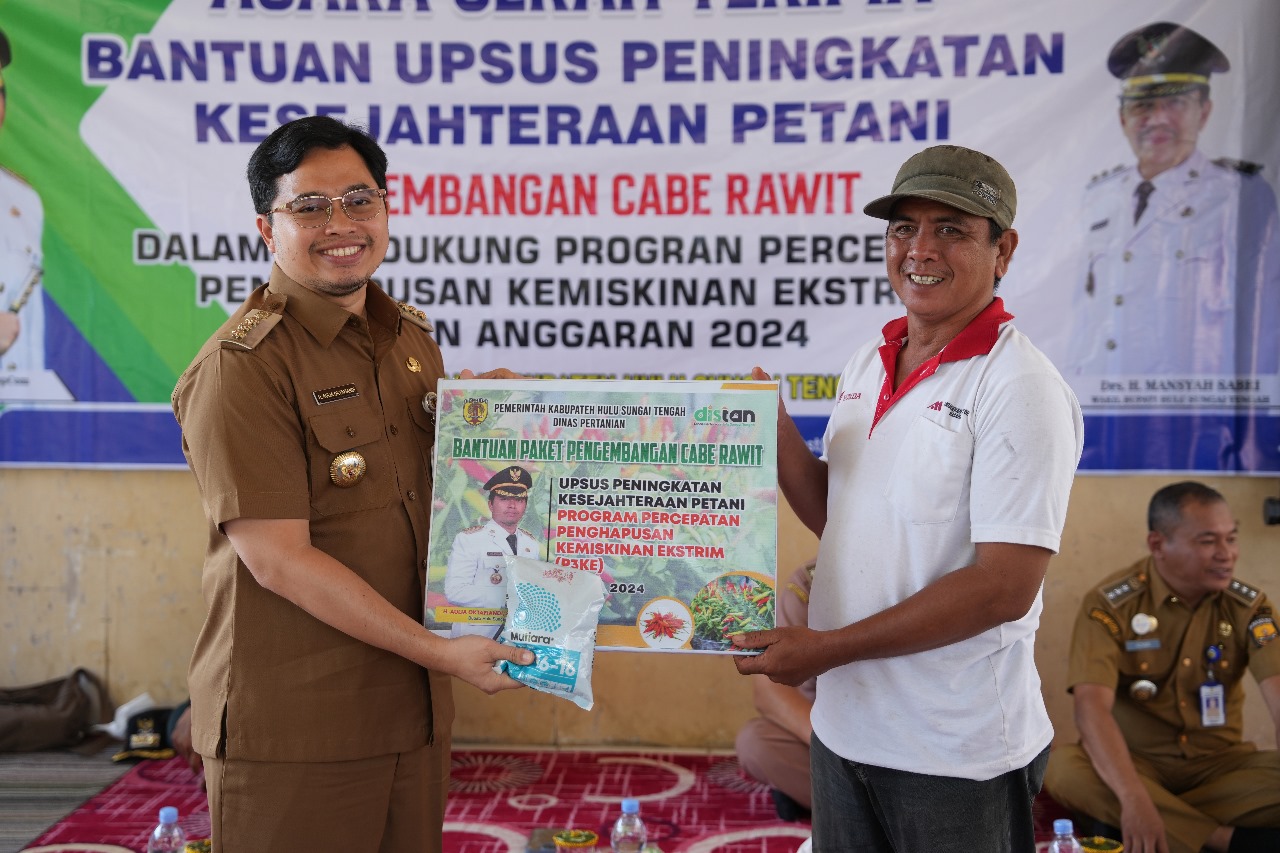 Headline9.com, BARABAI – Bupati Hulu Sungai Tengah (HST), H Aulia Oktafiandi serahkan bantuan Upaya Khusus (Upsus) kepada petani pengembangan cabai rawit sebagai bentuk dukungan terhadap program percepatan penghapusan kemiskinan ekstrem sekaligus peningkatan kesejahteraan.