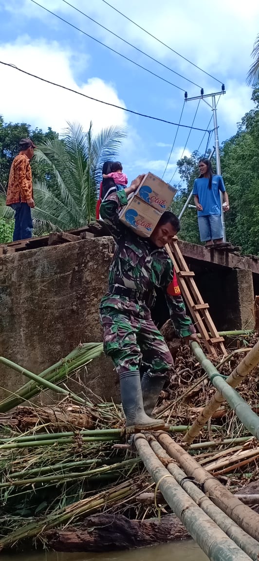 Berawal Babinsa Dusun Takuang, Serda Lulus Setyanto bersama dengan warga sekitar pukul 17.30 Wita, Minggu  (14/4) lalu hendak melintasi jembatan. Tiba-tiba air sungai yang deras meluap secara sepontan menghayutkan badan jembatan. Melihat peristiwa tersebut babinsa melapor kan kepada Danramil.