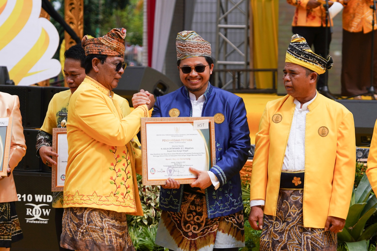 Penghargaan ini langsung diterima Bupati HST H Aulia Oktafiandi. Mengingat, HST kini tak ada lagi memiliki desa sangat tertinggal dan tertinggal. Di mana, hanya ada status mandiri, maju dan berkembang.