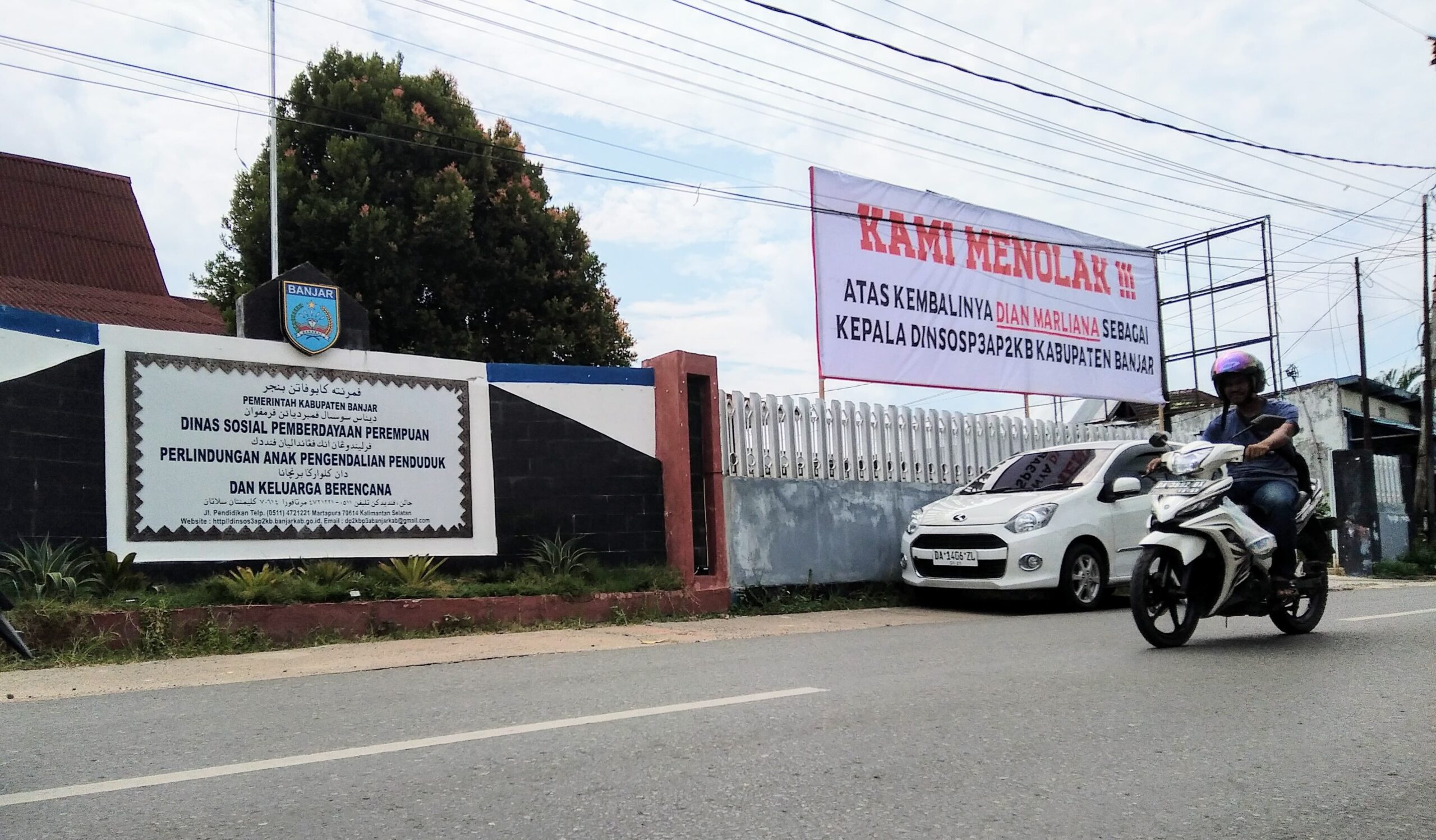 Diketahui, pemblokiran kantor Dinsos P3AP2KB akan berlangsung selama tiga hari ke depan sampai ada tanggapan dari Pemkab Banjar. Ini merupakan sikap penolakan mereka terhadap hadirnya lagi Dian Marliana sebagai pimpinan mereka di Dinas Sosial, Pemberdayaan Perempuan, Perlindungan Anak, Pengendalian Penduduk dan Keluarga Berencana (Dinsos P3P2KB) Kabupaten Banjar.
