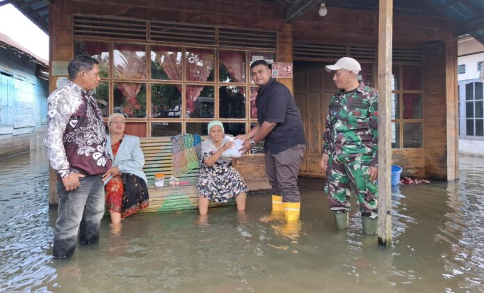 Paket yang diberikan ini, diperuntukkan bagi warga yang terdampak banjir dan. Adapun banjir yang dirasakan warga setempat sudah hampir dua pekan.