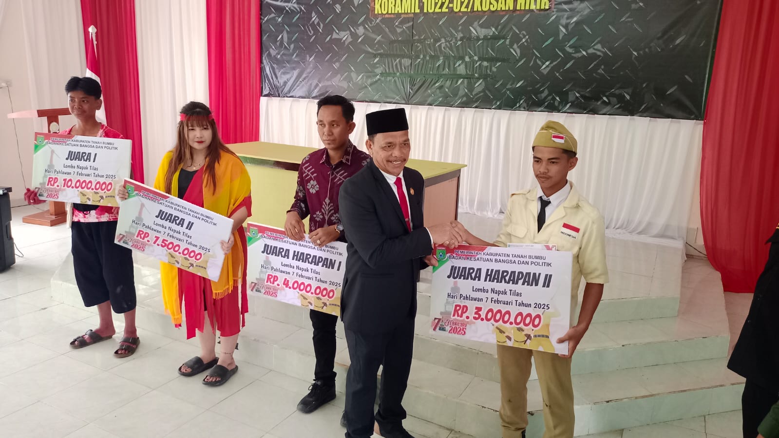 Heaadline9.com, BATULICIN – Pemerintah Kabupaten Tanah Bumbu (Tanbu), melalui Dinas Kesatuan Bangsa dan Politik (Kesbangpol) menyerahkan hadiah kepada para pemenang lomba Napak Tilas dalam rangka memperingati Hari Pahlawan 7 Februari.