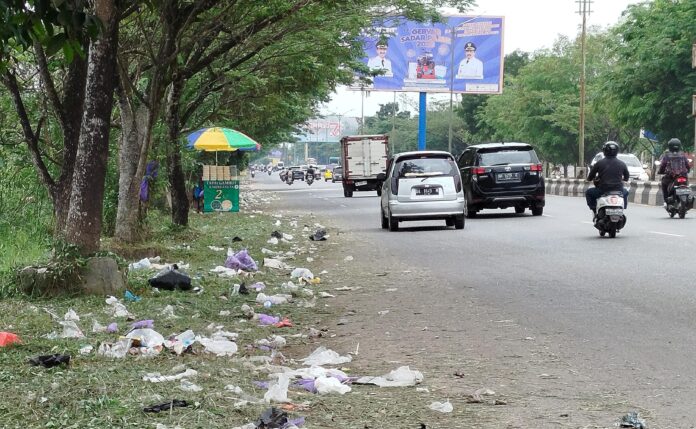Headline9.com, MARTAPURA – Sampah di sepanjang Jalan Ahmad Yani Km15 sampai Km18, Kelurahan Gambut, Kecamatan Gambut, Kabupaten Banjar, berserakan, Rabu (25/6/2025). Tak terhitung lagi jumlahnya, sehingga menjadi pemandangan tak elok.