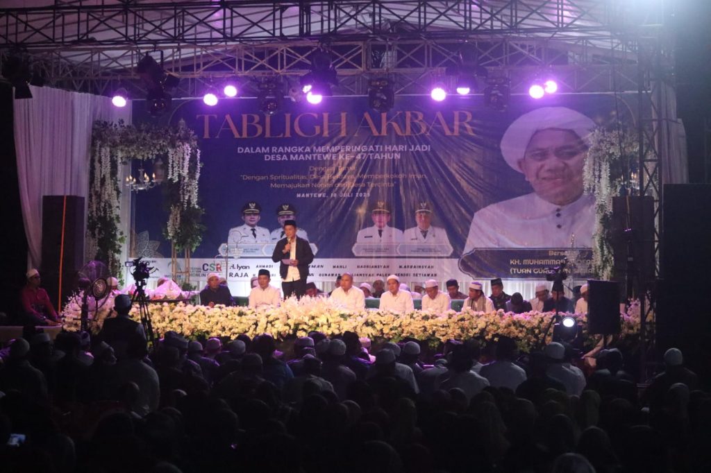 Apresiasi tersebut disampaikan pada saat Tabligh Akbar dalam rangka memperingati Hari Jadi ke-47 Desa Mantewe, Kecamatan Mantewe, Kamis (10/7/2025).