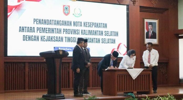 Kesepakatan tersebut ditandai adanya penandatangan nota kesepahaman (MoU) antara Gubernur Kalsel H Muhidin dengan Kejati Kalsel Rina Virawati, bertempat di Gedung Auditorium DR KH Idham Chalid, Kompleks Kantor Gubernur Kalsel, Cempaka, Kota Banjarbaru, Senin (14/7/2025) siang.