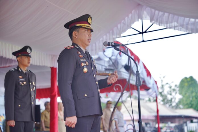 Upacara tersebut dipimpin oleh Kapolres Balangan, AKBP Dr. Yulianor Abdi, dan turut dihadiri oleh Penjabat (Pj) Sekretaris Daerah Kabupaten Balangan Sufriannor, unsur Forkopimda, jajaran Polres Balangan, perwakilan mitra perusahaan, mahasiswa, pelajar, serta elemen lainnya.