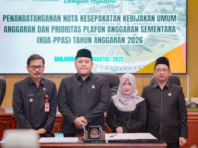 Headline9.com, BANJARBARU – DPRD Kota Banjarbaru bersama Pemerintah Kota Banjarbaru menandatangani Nota Kesepakatan Kebijakan Umum Anggaran dan Prioritas Plafon Anggaran Sementara (KUA-PPAS) Tahun Anggaran 2026, pada Rapat Paripurna di Ruang Graha Paripurna Gedung DPRD Kota Banjarbaru, Kamis (14/8/2025).