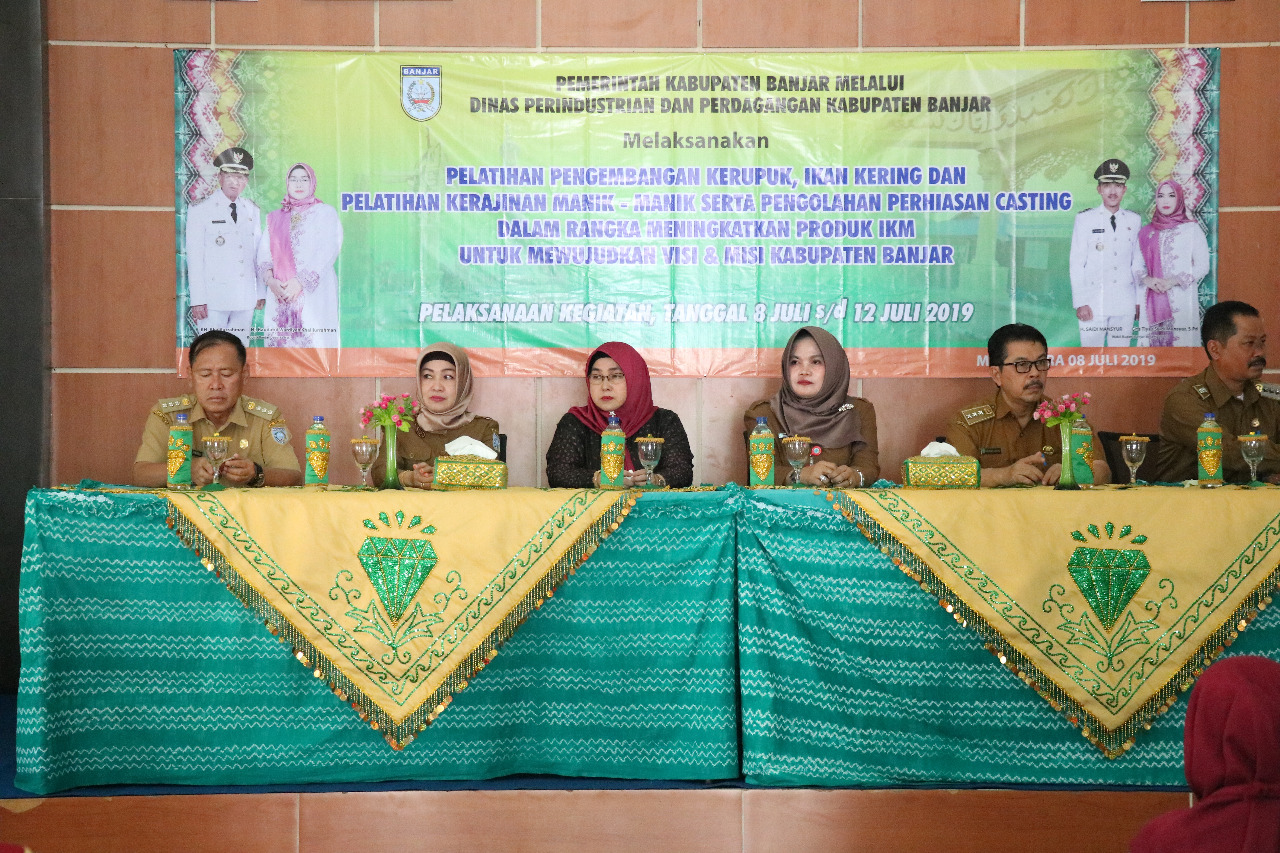 HEADLINE9.COM, MARTAPURA – Sebanyak 50 orang dari IKM Kecamatan Martapura, Martapura Barat, Martapura Timur, dan Karang Intan mengikuti tiga jenis pelatihan yang digelar oleh Dinas Perindustrian dan Perdagangan Kabupaten Banjar. Kegiatan ini langsung dibuka oleh Ketua Dekranasda Banjar Hj Raudhatul Wardiyah di Aula Disperindag, Senin (8/7) siang.
