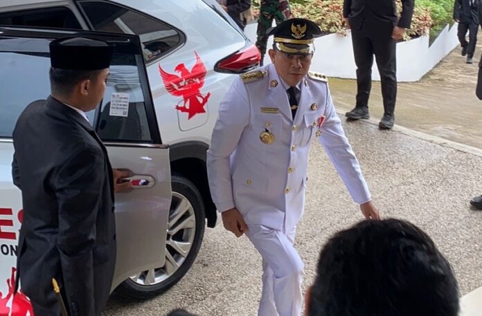 Namun, ada satu momen yang mencuri perhatian. Yaitu mobil dinas sederhana Bupati Andi Rudi Latif yang dihiasi branding merah putih dan logo resmi 80 Tahun Kemerdekaan RI.