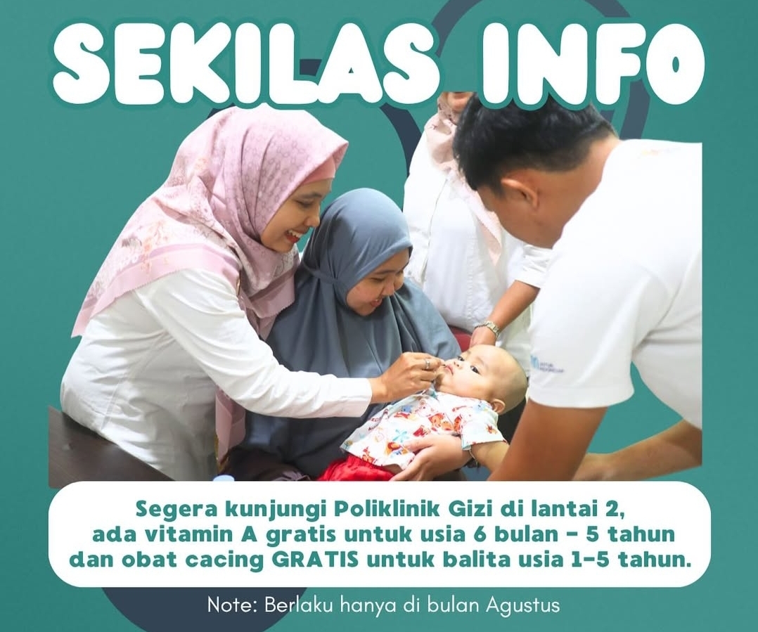 “Cukup membawa KIA (Kartu Identitas Anak) dan langsung mendaftar di Poliklinik Gizi lantai 2. Pelayanan ini terbuka untuk masyarakat umum dan berlaku hanya selama bulan Agustus,” jelas dr. Danny.