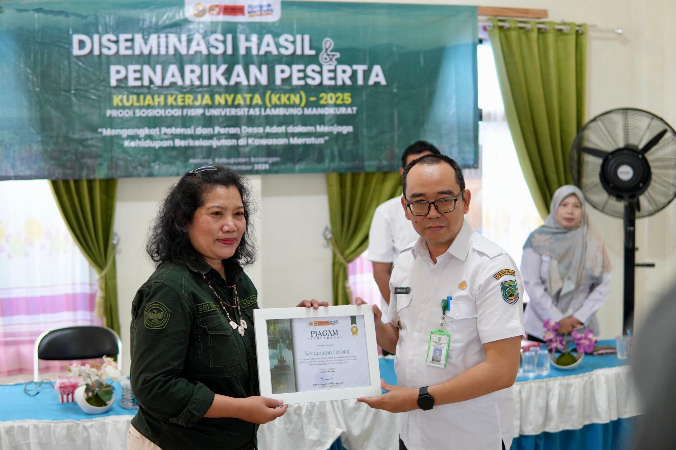 Headline9.com, BALANGAN – Program Studi (Prodi) Sosiologi Fakultas Ilmu Sosial dan Ilmu Politik (FISIP) Universitas Lambung Mangkurat (ULM) Banjarmasin melaksanakan kegiatan diseminasi hasil sekaligus penarikan peserta Kuliah Kerja Nyata (KKN) 2025 di Kecamatan Halong, Kabupaten Balangan, Rabu (10/9/2025).