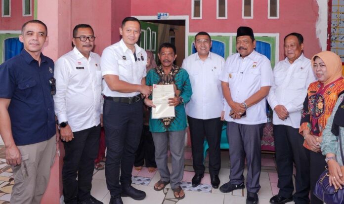 Headline9.com, BENGKULU – Wakil Menteri Agraria dan Tata Ruang/Wakil Kepala Badan Pertanahan Nasional (Wamen ATR/Waka BPN), Ossy Dermawan, bersama Menteri Koordinator Bidang Infrastruktur dan Pembangunan Kewilayahan (Menko IPK), Agus Harimurti Yudhoyono (AHY) menyerahkan 184 sertipikat di wilayah kerja Kantor Wilayah (Kanwil) BPN Provinsi Bengkulu. Penyerahan Sertipikat Elektronik ini dilakukan secara door to door di Kelurahan Bumi Ayu, Kecamatan Selebar, Kota Bengkulu, Selasa (16/09/2025).