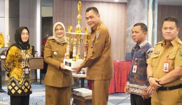 Headline9.com, BANJARBARU – Plt Kepala Badan Riset dan Inovasi Daerah (BRIDA) Kalsel, Husnul Hatimah, serahkan penghargaan kepada Kepala BPKPAD Banjar, Akhmad Zulyadaini. Bertempat, di Hotel Harper, Banjarmasin, Senin (30/6/2025).