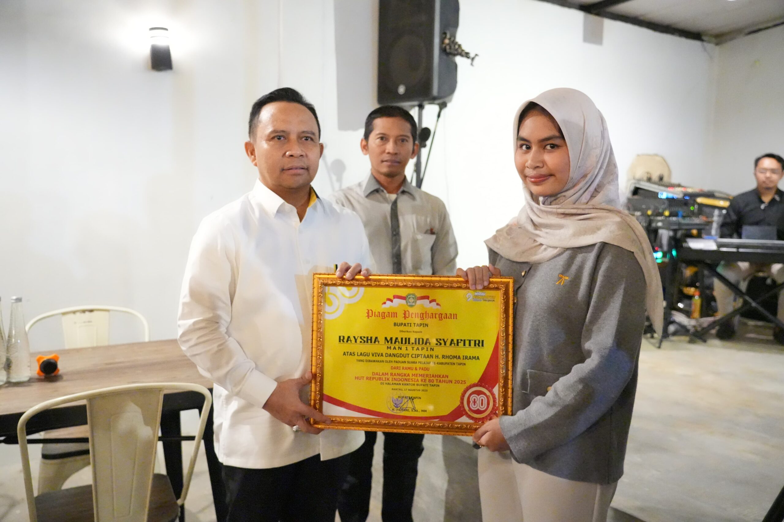 Sebanyak 40 pelajar yang tergabung dalam tim paduan suara menerima penghargaan resmi dari Pemerintah Kabupaten Tapin atas partisipasi mereka dalam memeriahkan upacara dan perayaan Hari Kemerdekaan.