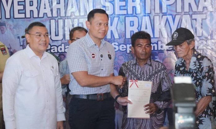 Hal ini disampaikan oleh Wakil Menteri (Wamen) ATR/Wakil Kepala (Waka) BPN, Ossy Dermawan, pada kegiatan Penyerahan Sertipikat Tanah untuk Rakyat, di Kerapatan Adat Nagari (KAN) Kuranji, Kota Padang, Selasa (30/9/2025).