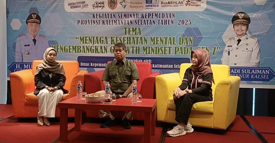 Headline9.com, BANJARMASIN – Memperkuat kualitas generasi muda menuju Indonesia Emas 2045, Dinas Kepemudaan dan Olahraga (Dispora) Provinsi Kalimantan Selatan menggelar Seminar Kepemudaan bertema “Menjaga Kesehatan Mental dan Mengembangkan Growth Mindset pada Gen Z” di Banjarmasin, Sabtu (25/10/2025).